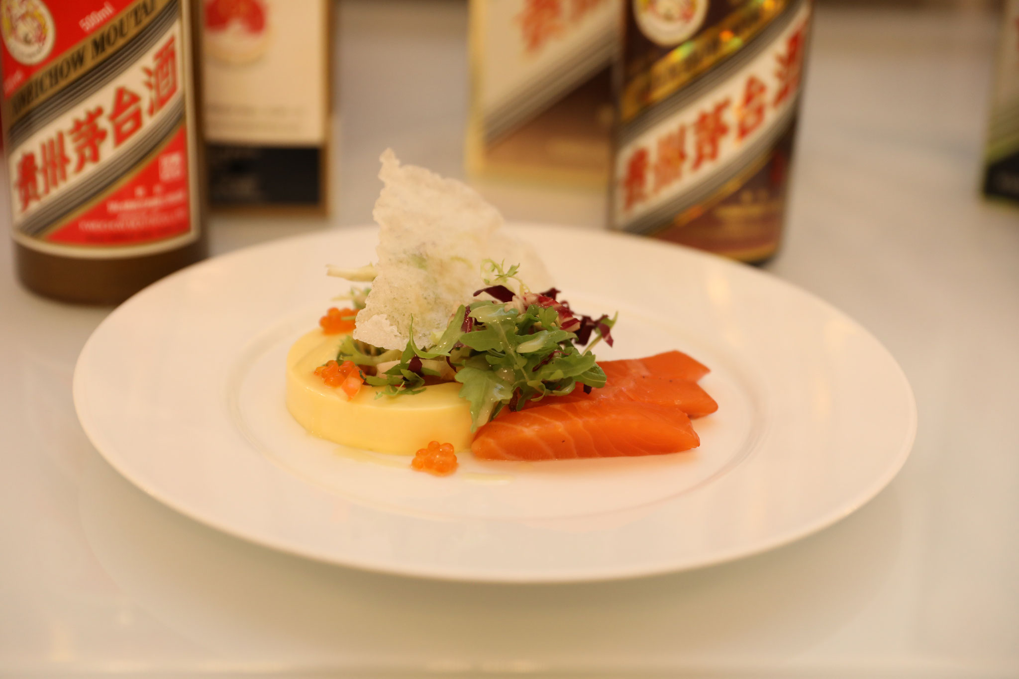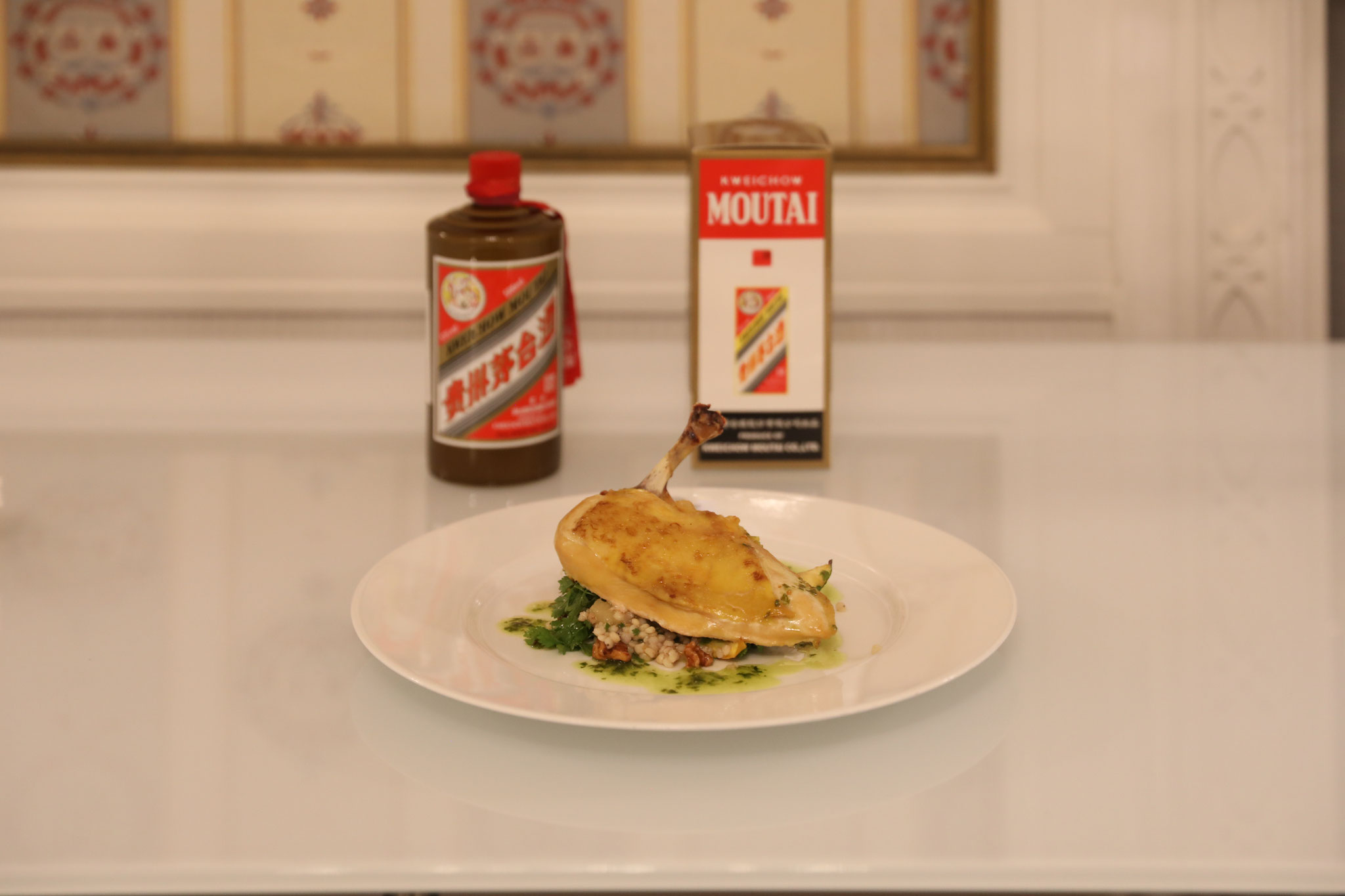 This journey of flavour was perfectly complemented by a thoughtfully curated menu, where each element was designed to create a dialogue with the spirit. The experience began with two innovative Moutai cocktails, each brilliantly crafted to awaken the palate and showcase the spirit's versatility in a contemporary setting. A starter of fjord trout, delicately infused with Moutai, highlighted the spirit’s ability to enhance subtle flavours. The main course, a succulent poulard supreme with warm sorghum and Moutai-infused apricots, created a perfect synergy between the dish’s rich, earthy notes and Jingpin's complex profile. For the finale, a refreshing melon Moutai ice cream mirrored the spirit’s own silky texture, providing a light and elegant end to the meal.
